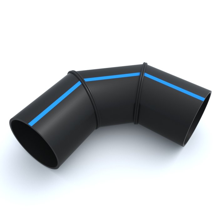 Отвод сварной односекционный ПНД 90º 560x330x744x280 мм SDR-17 используется при выполнении прокладки трубопроводов под разными углами.